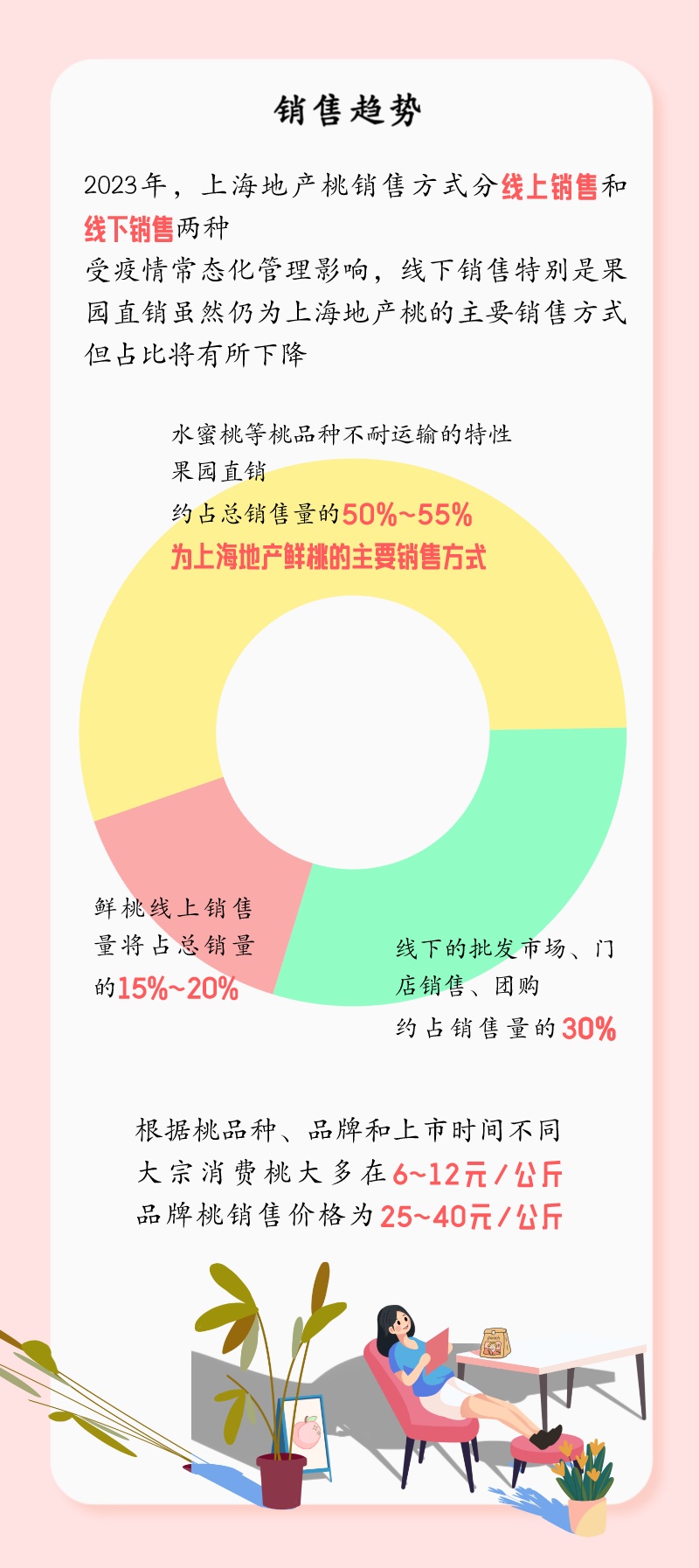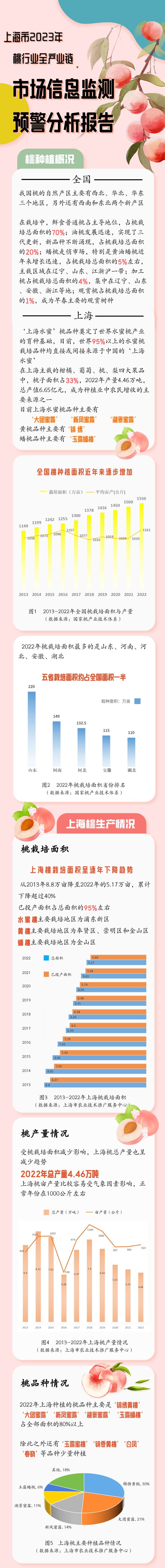 你知道近年来地产桃子的生产情况吗?销售方式有哪些?……据市农业农村委介绍,上海市农产品(瓜果)全产业链市场信息监测预警分析团队日前公布了《上海市2023年桃行业全产业链市场信息监测预警分析报告》,一起来看一下吧↓