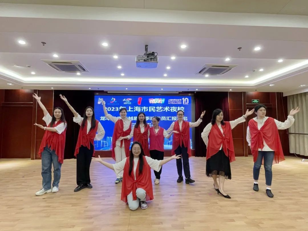 虽然动作还稍显稚嫩,咬字还有点不标准,但对于刚刚接触越剧的学员来说已经是质的飞跃。彼此还互相拍下对方表演的视频发在班级群里,“学习群”瞬间变成了“夸夸群”。汇报演出后,学员们向龙华街道社区文化活动中心、上海徐汇越剧团送上了两面锦旗以表达感谢之情。