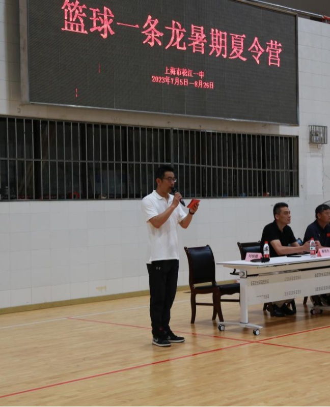 2023年7月5日上午,篮球“一条龙”暑期夏令营开营仪式在上海市松江一中举行。区教育局、区体育局相关科室负责人,原上海市女篮主教练杨正鸣,松江七中、区篮球项目中心组、松江一中分管行政,以及来自二实小、上师附外小、松江七中、松江一中的教练员、运动员和家长们共同参加本次活动。本次夏令营由上海市篮球“一条龙”布局学校松江一中牵头,二实小、上师附外小、松江七中等学校共同承办,专家引领,提高学生的篮球技能水平,增加交流学习的机会,推进松江区学校体育“一条龙”篮球项目的发展。