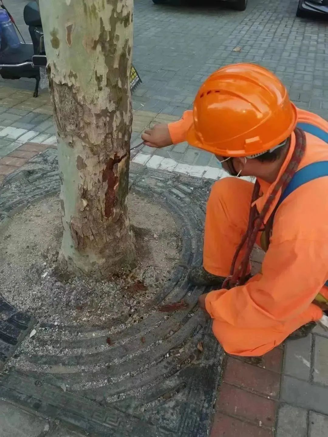 早在5月,为更好开展2023年行道树夏季综合养护工作,区绿化市容局召集养护单位及养护施工监理单位,对今年夏季各项重点工作进行了具体安排,如悬铃木剥芽、行道树“松、扎、绑”、防汛防台、行道树附属设施整治、病虫害防治等。截至6月底,全区已完成约13300株悬铃木的第一轮剥芽工作,并对近200株行道树进行了天牛治理。