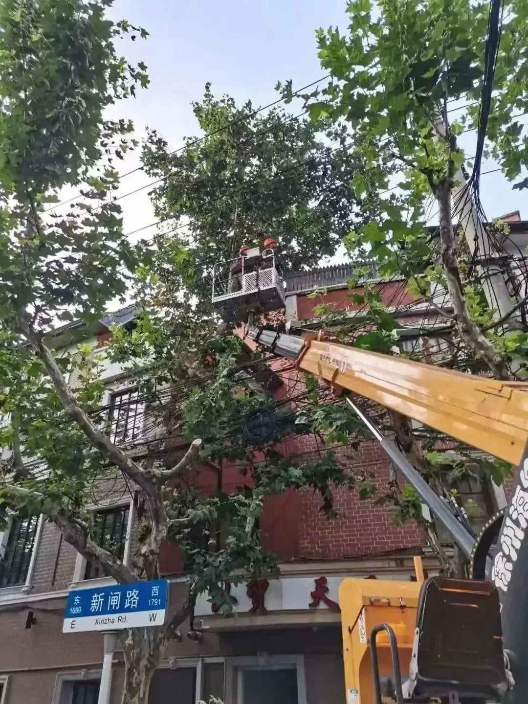 6月起,上海进入主汛期。为确保安全度汛,区绿化市容局积极开展行道树防汛防台隐患排查工作,在电力部门的配合下,对存在树线矛盾隐患的安远路、南阳路、长乐路、昌平路等路段进行道树修剪。