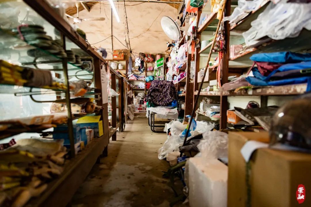走进店内,老式玻璃货柜里、木质货架上,整整齐齐陈列着各类商品,油纸包裹的胶鞋、色彩多样的棉布,以及墙上张贴的手绘广告画,都能一下子将人的记忆拉回到几十年前。