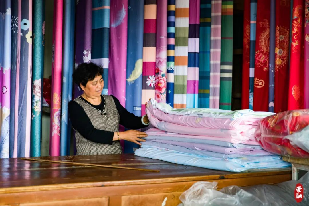 做了几十年生意,龚静贤也学会一些经营门道。进入新世纪后,买布做衣服的人越来越少,龚静贤就寻思着增添一些设备,可以为村民定制被套、服装。