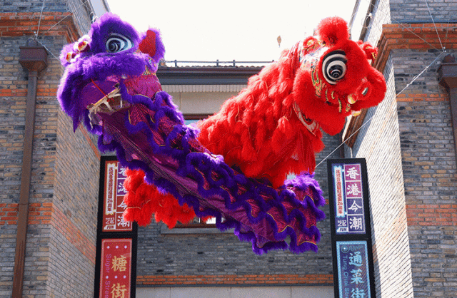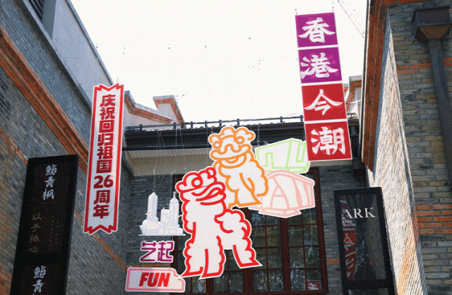 在虹口遇见香港,在香港回归26周年之际,香港·上海双城汇聚,今潮8弄百年弄堂在掀广东文化风潮,霓虹招牌、港风装饰仿佛让人从上海弄堂穿越到香港街头。