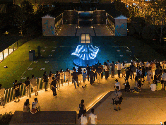 海派石库门建筑群慎余里及百年文保建筑天后宫演绎的《Ammonite》《Flux》两组生光艺术装置,让建筑视觉有了新的灵动生命力。
