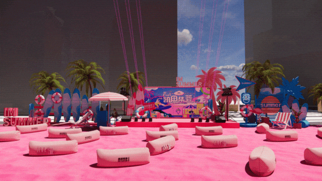 凯田集荟第二季重磅回归!带着粉色的浪漫与夏日热情,在魔都打造一场夏日狂欢派对,粉色沙滩空降凯田路,棕榈树、沙滩躺椅等场景,拥有超chill的海边盛宴。
