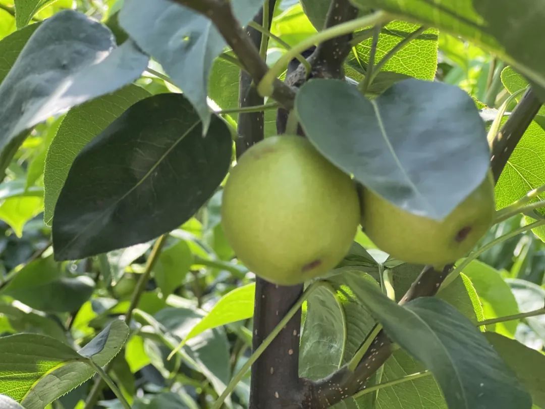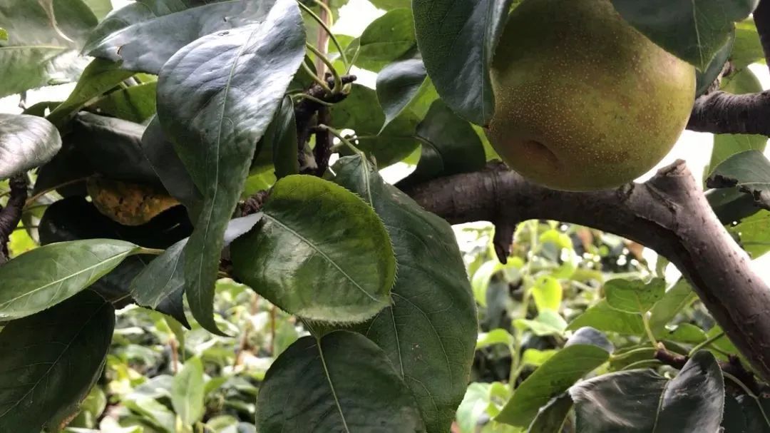 长堰村的翠冠梨园内,一片片的梨树在阳光下显得格外郁郁葱葱。梨树上结满了一个个饱满的果实,看着让人直咽口水……