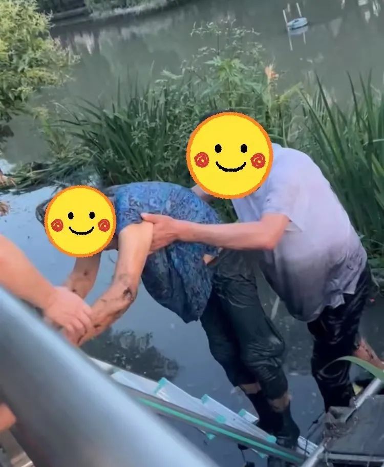 屋里的刘先生一听到有人落水的消息,下意识地火速赶到河边查看情况,发现河沟里有位老人正在拼命挣扎着呼救。他定睛一看,正是自己家隔壁住着的老太太。老人被河流冲到河道深处,身体陷在泥泞中不得动弹,水面正在一点点逼近脖子。人命关天,情况万分紧急!