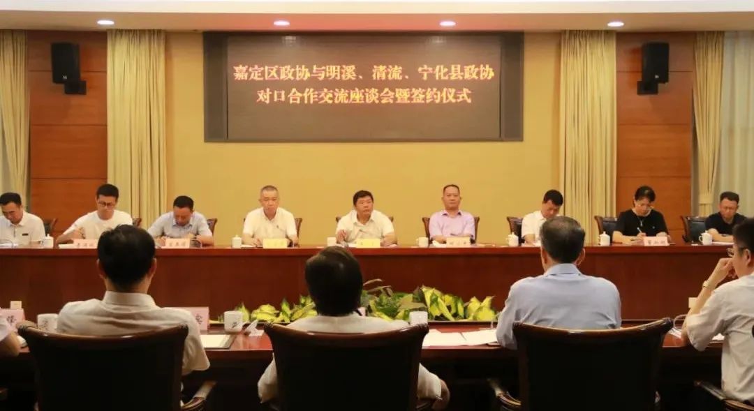 7月10日,嘉定区政协与福建省三明市明溪县、清流县、宁化县政协举行对口合作交流座谈会暨签约仪式,进一步深化和巩固四地政协之间的合作与交流。嘉定区政协主席杨莉主持会议。