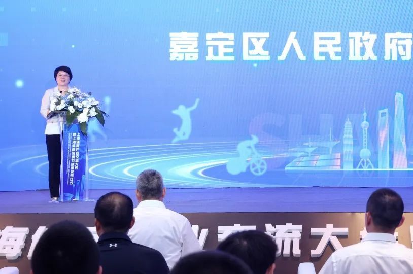 嘉定区副区长汤东英为嘉定区体育产业联盟揭牌