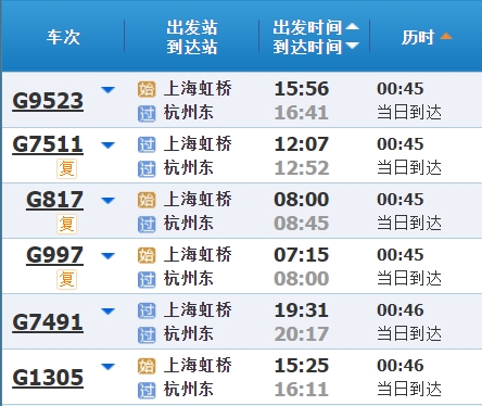 高铁最快运行时间 :45分钟
