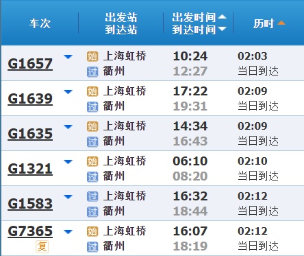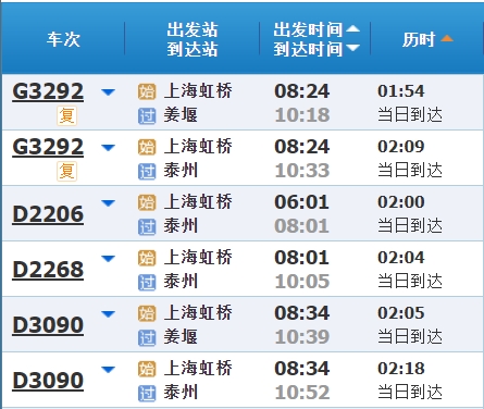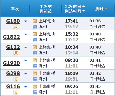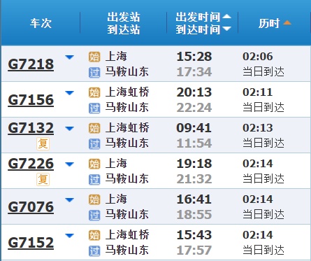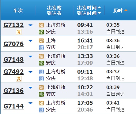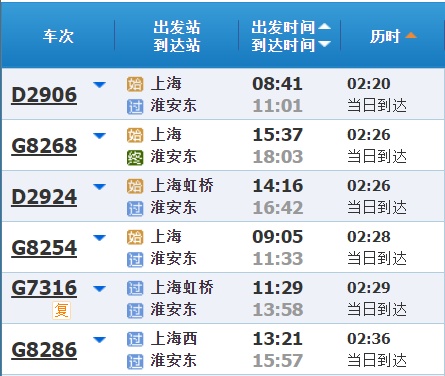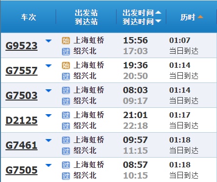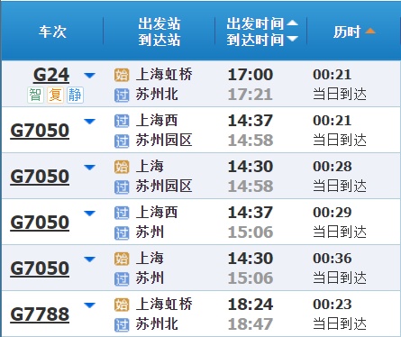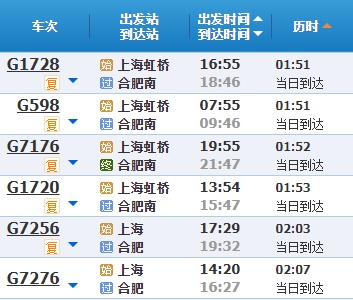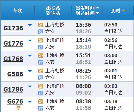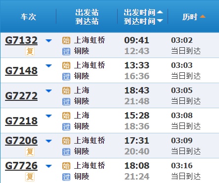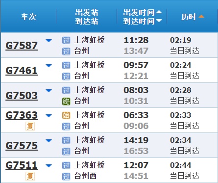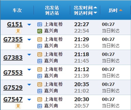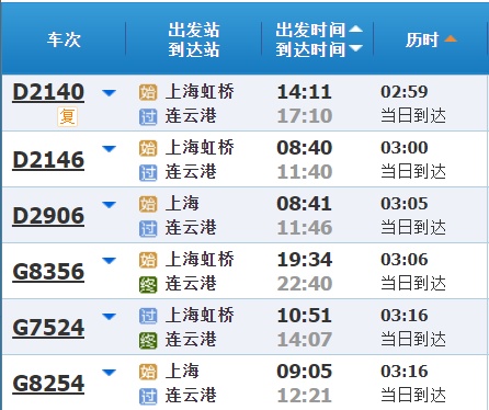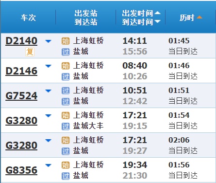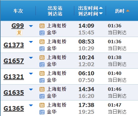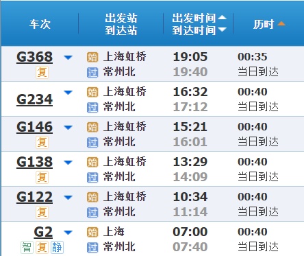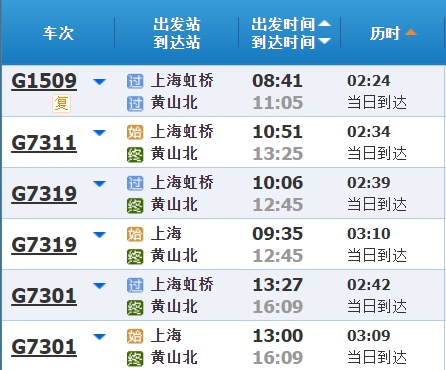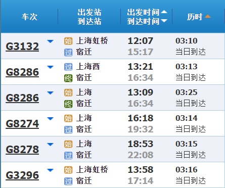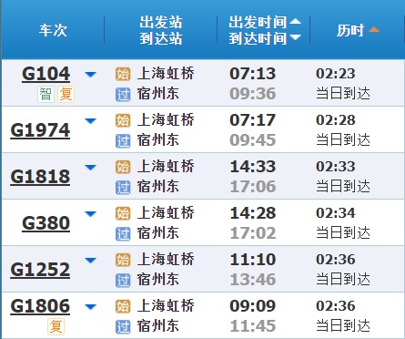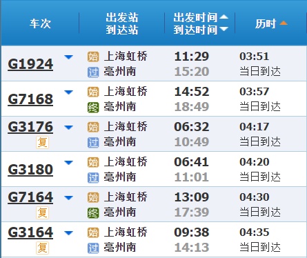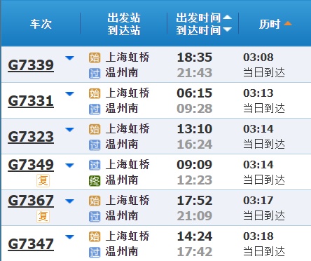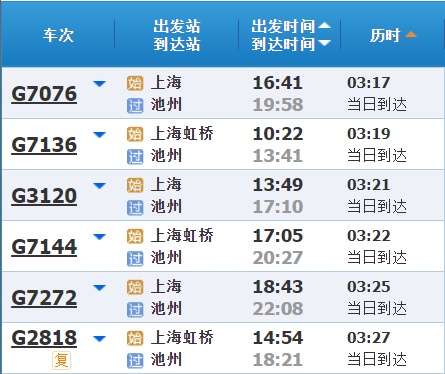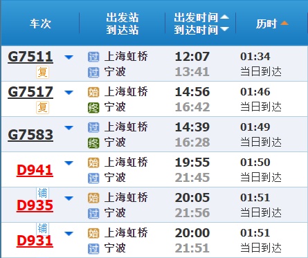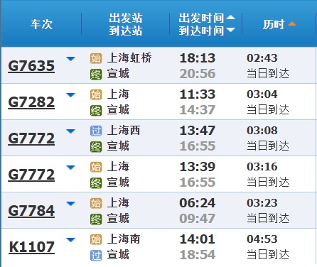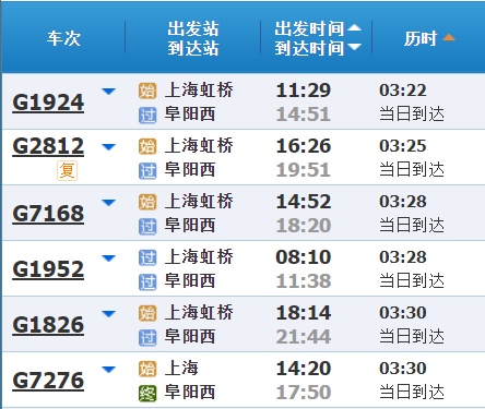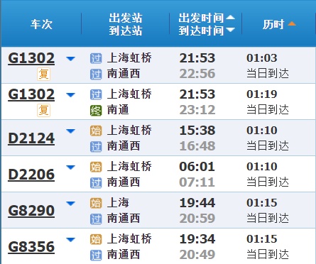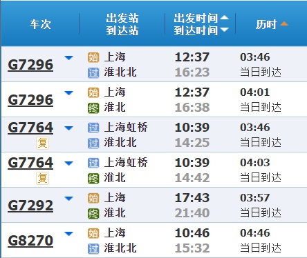 部分车次信息