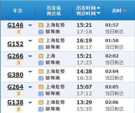 高铁最快运行时间 :2小时6分钟