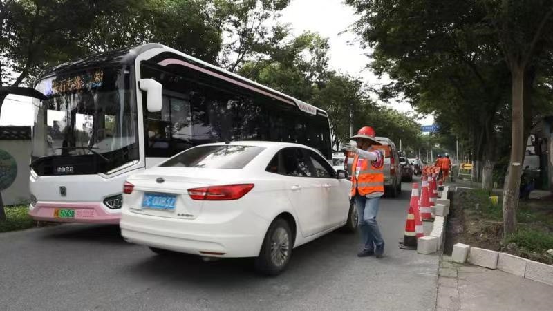 这条路上车流量还是比较大的,在施工过程中,我们采用半封闭施工,派专人指挥,保证行人和车辆的安全。