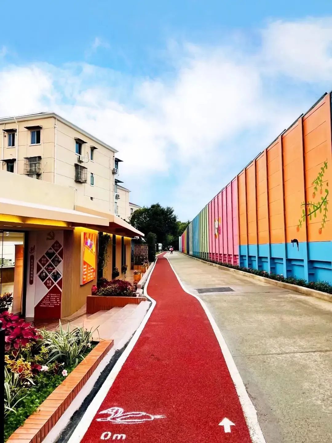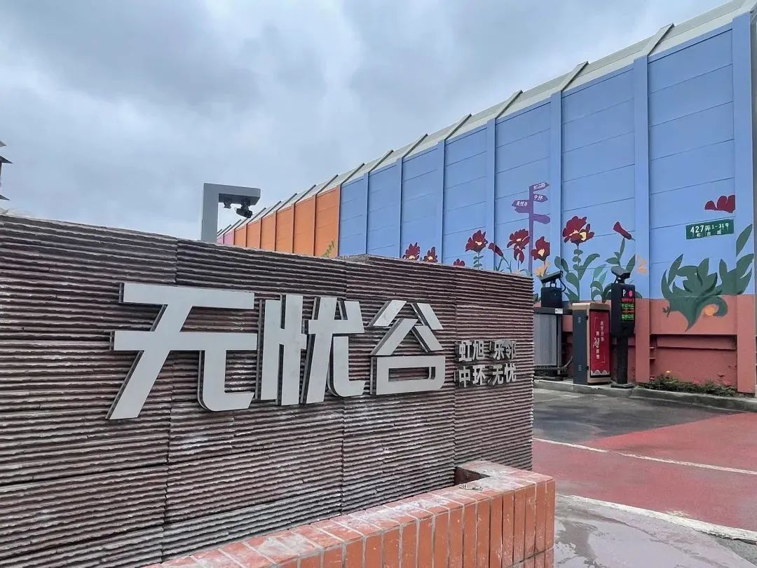 “无忧谷”旁是中环快速路,建有高高的隔音板。为了让整体的环境更加优美,虹旭居民区主动联系相关市政单位,在确认了绘画不会对隔音板造成影响后,邀请了美术学院的师生来到这里进行艺术创作。经过几天的努力,原本灰暗单调的隔音板摇身一变,成为了色彩缤纷的“艺术墙”,一幅幅鲜艳生动的墙绘作品让这个地方成为了居民们拍照打卡的“网红地”。