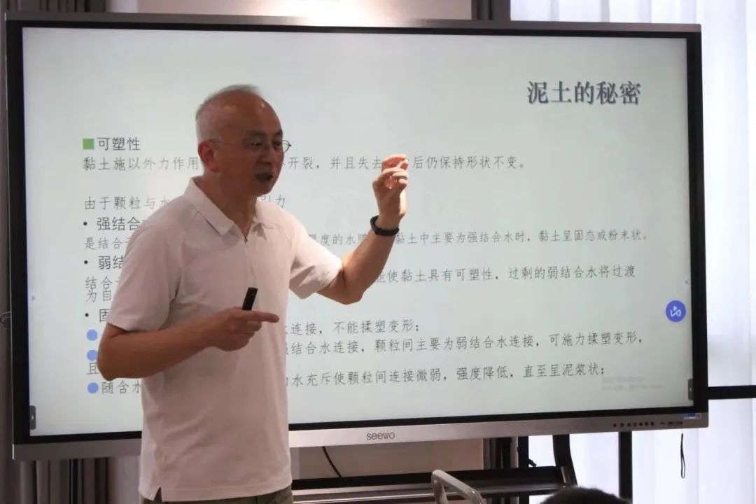 黏土、粘土和泥土,它们有什么区别?它们是同一种物质吗?泥土从哪里来?所有的泥土都能制陶吗?……带着一连串的问题,一起走进普陀区青少年教育活动中心举办的2023暑期青少年博雅课堂,听中国科学院上海硅酸盐研究所高级工程师、上海市工艺美术大师徐霁明老师主讲的 “泥土的秘密”互动式讲座,开启一场科学与艺术融合的泥土探秘之旅,全区百余位中小学生通过线上线下共同参加。