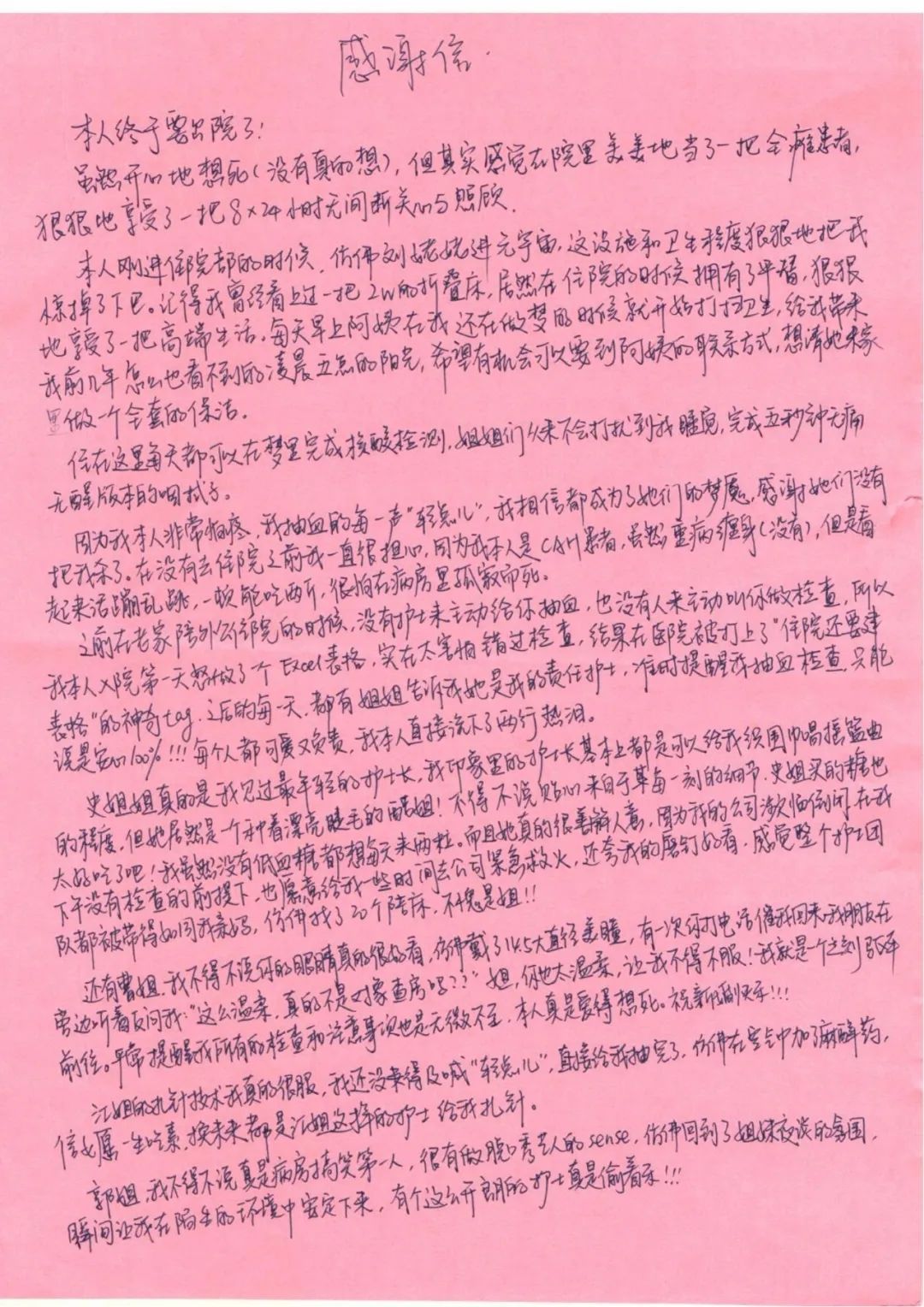 在瑞金,每天都会收到患者的感谢信,这些感谢信的字里行间,总是透出对医护人员的感激之情,但却很少写出自己患病后的心路历程,而今天这封感谢信却别具一格。