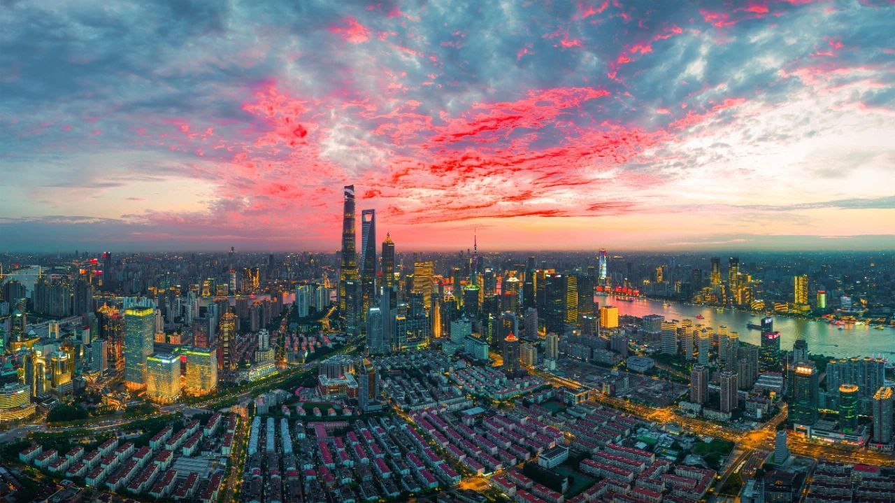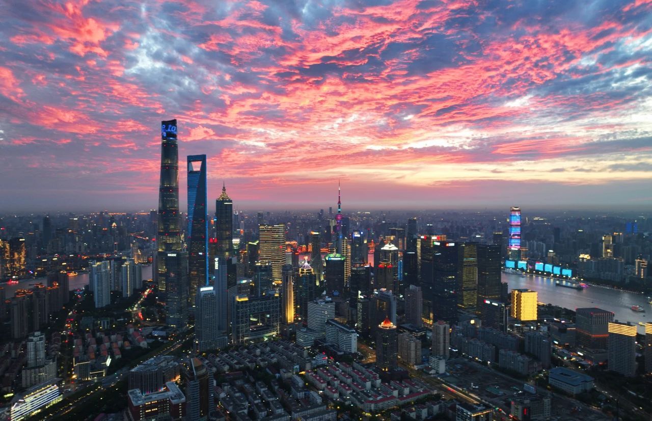 申城的天空留下了绝美晚霞