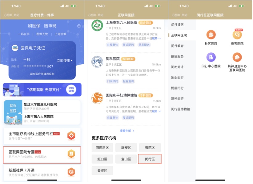 闵行区各级公立医疗机构的互联网医院在“闵行捷医”基础上,此次又搬入随申办“医疗付费一件事”板块中。患者在板块中点击进入“互联网医院专区”,可以找到闵行区内互联网医院,进一步为更广泛的患者享受互联网诊疗服务。市民也可以搜索“闵行旗舰店”,直接进入互联网医院板块。