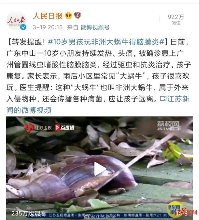 因为非洲大蜗牛在南方真的很常见,