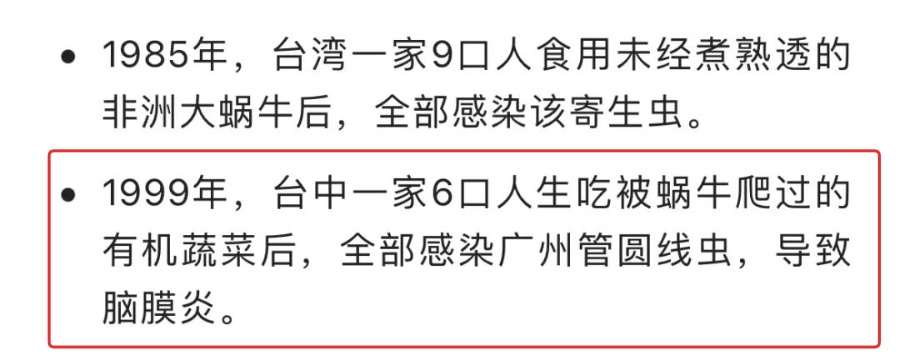 蜗牛爬行时可能会留下粘液,而粘液本身就携带着病原体,甚至它们的粪便中依旧存活着广州管圆线虫的幼虫。