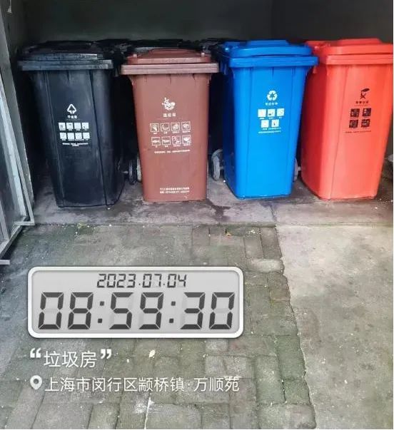 万顺苑小区只有一个垃圾箱房,投放时间有专人指导和监督居民投放,保证桶内纯净度;环卫收运后,第一时间将桶冲洗干净,摆放整齐,并拍照记录发工作群,无任何问题才关闭垃圾箱房门。