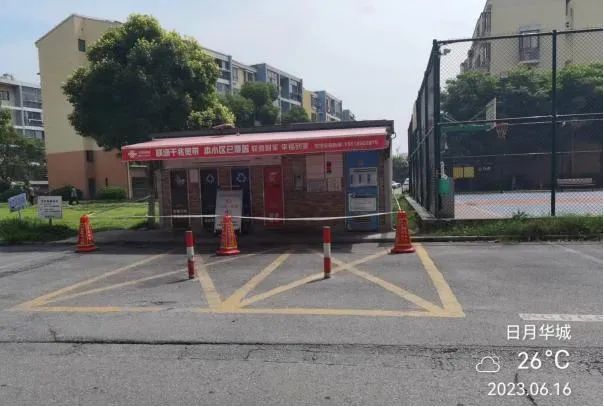 日月华城小区增设“垃圾分类”误时投放点,并设有专人督导,从源头有效减少乱扔小包垃圾的现象。非投放时段,由小区物业、保洁负责巡检,每半小时一次,巡查小区落地包,并循环播放垃圾分类小喇叭、拉警戒线,加强“垃圾不落地”的工作宣传,进一步提高居民的垃圾分类参与率。