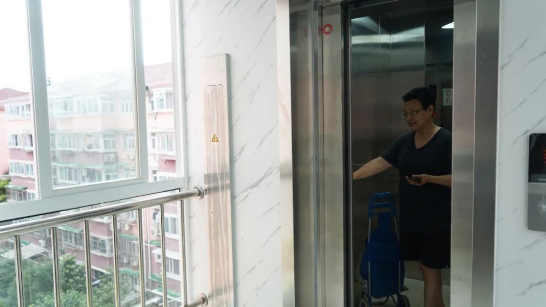 装了电梯后,唐阿姨不仅买菜方便多了,每天还跟应老伯两个人一起出门散散步,活络一下身体。“现在天太热了,以前没有电梯的时候,真的是腿发软、浑身出虚汗,现在老开心了。”唐阿姨说。