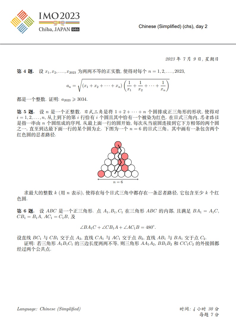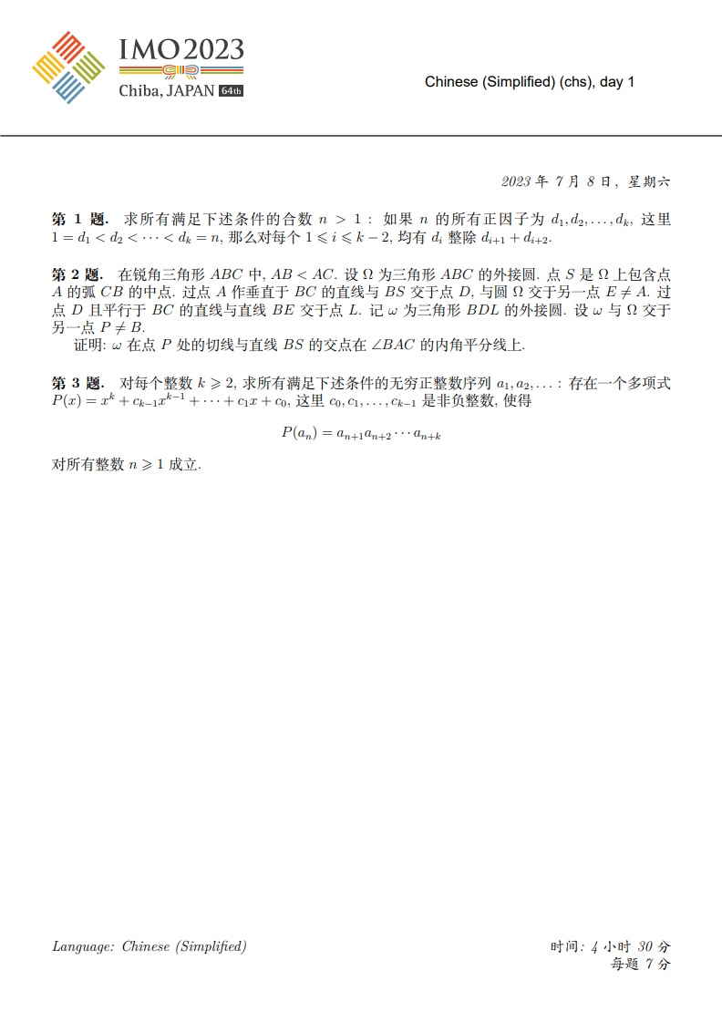 根据比赛规则,每个国家或地区可派不超过6名学生参赛,参赛选手要在连续两天内解答6道题,满分为42分。