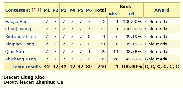 经过激烈角逐,中国队来自上海中学的王淳稷和来自浙江省诸暨市海亮高级中学的史皓嘉以满分的成绩摘得金牌;