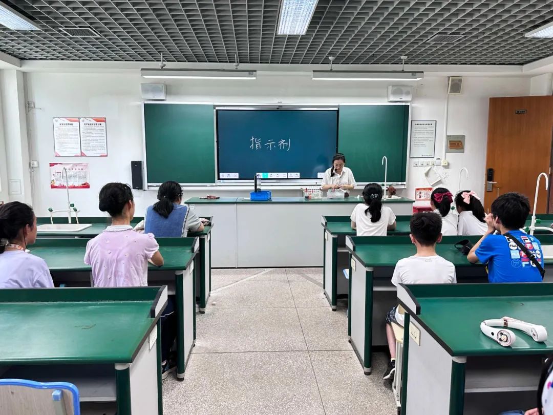 在学校老师的带领下,同学们先后参观了学校物理、化学实验室,学习了解各种先进设备。在化学小讲堂上,老师以趣味问答形式,讲解化学实验的安全问题,有的同学还提前做了功课,纷纷抢答。神奇的化学反应,让孩子们领略了科学研究的魅力。