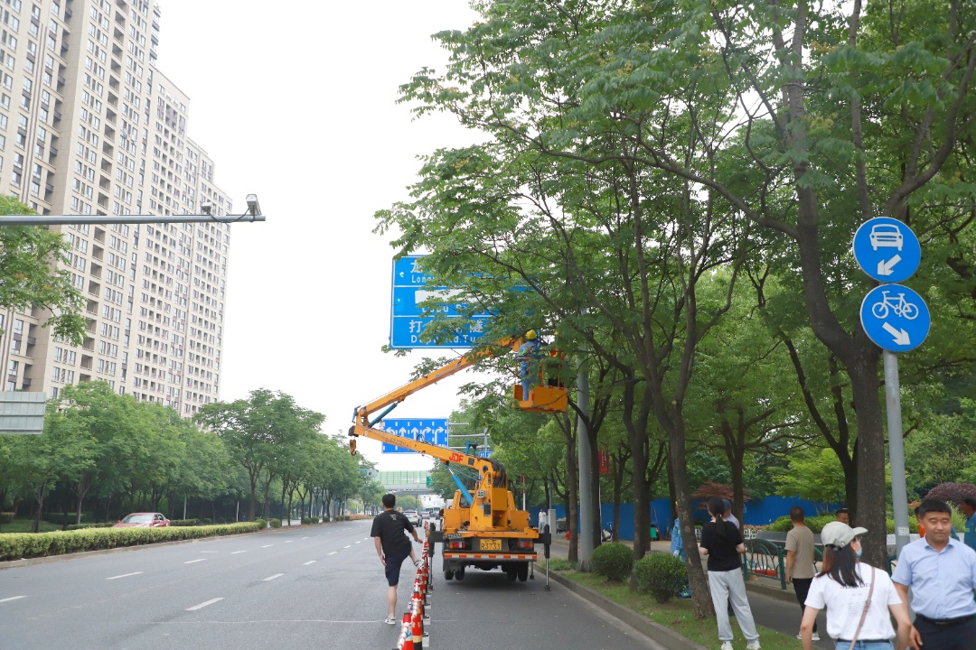 对于个别无法通过修剪来解决矛盾问题的点位,市道运部门结合标识牌养护工作,并根据现场立地条件,因地制宜,开展移牌试点工作。