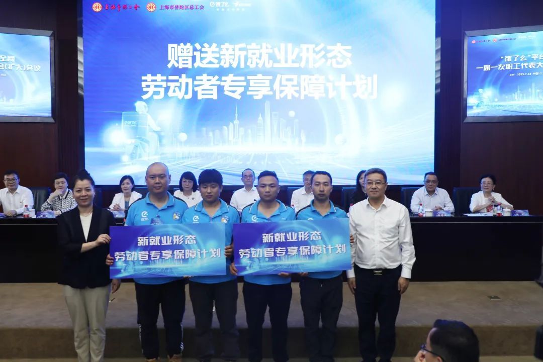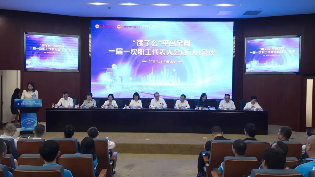7月13日下午,作为全国网约送餐行业首个全网职代会,“饿了么”平台全网一届一次职代会(扩大)会议在上海市普陀区召开,中华全国总工会副主席、书记处书记、党组成员江广平,中华全国总工会权益保障部部长粟斌,中国财贸轻纺烟草工会副主席彭艺;上海市总工会党组书记、副主席黄红,市商务委副主任周岚,市总工会挂职副主席赵德关;普陀区委副书记周艳,区人大常委会副主任、区总工会主席姚军出席会议,来自“饿了么”平台的175位全网外卖骑手和站点服务商员工代表参加会议。