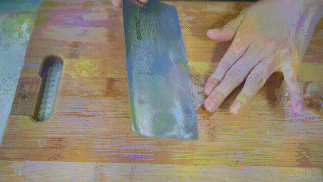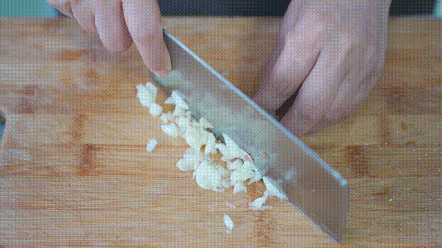 5.将大蒜剁碎后放入容器内备用。