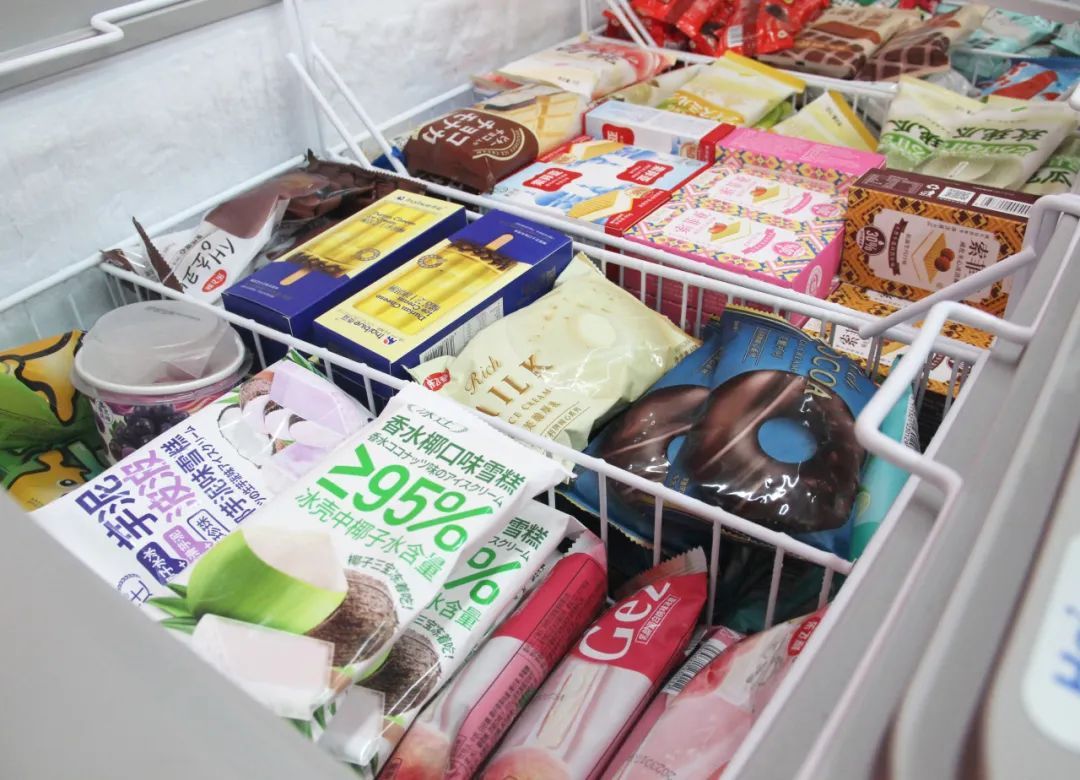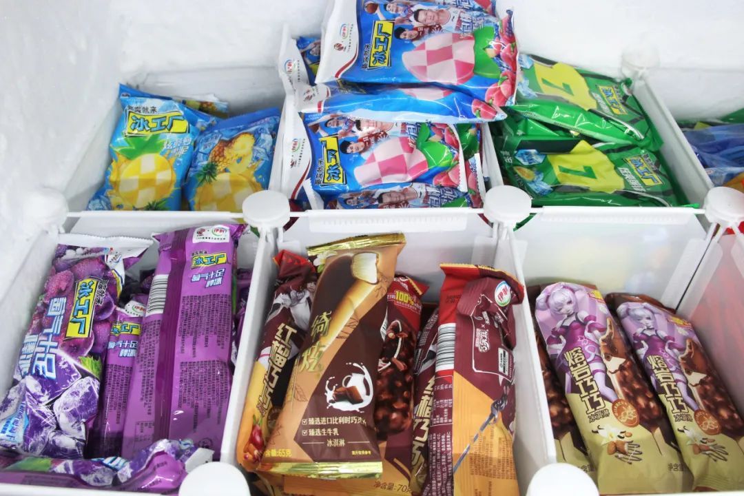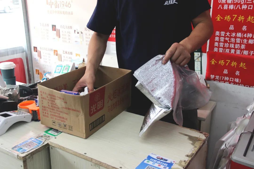 小店后方就是冷库,工作人员进进出出,都穿着厚厚的外套。记者了解到,7月中旬是店里生意最好的时候,各色冷饮每天能卖300-400箱,按平均一箱30支计算,单日冷饮销量就破万支。店员们光是进货理货,就天天忙到半夜。