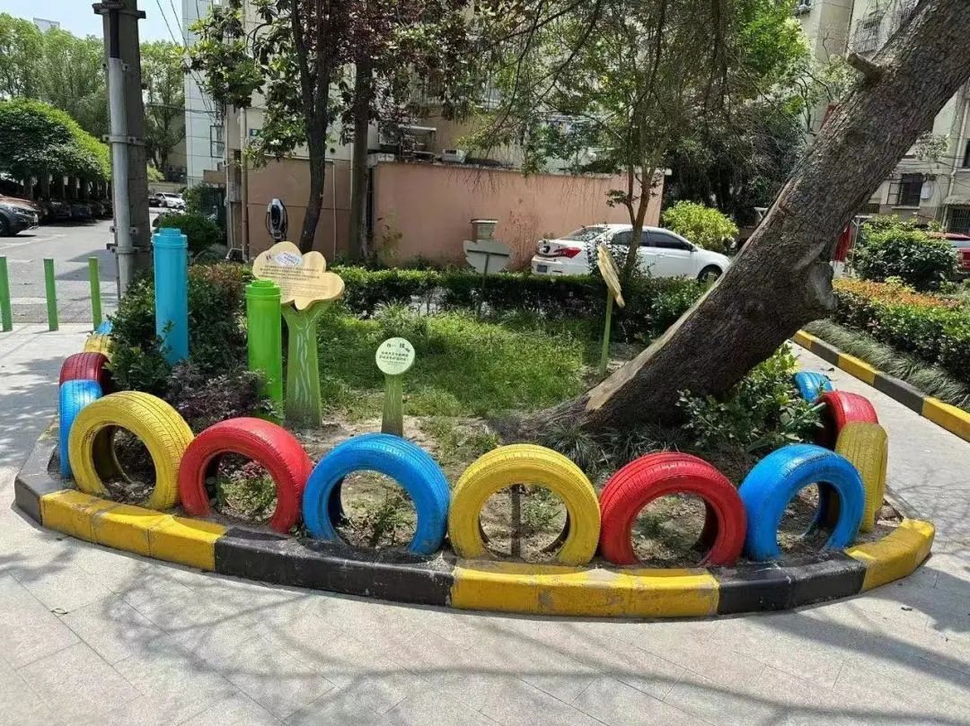 街道维修美化了社区公共座椅,在中心小花园打造自然植物观察角,并用废旧轮胎围合而成,营造一个低碳、绿色、有趣的儿童乐园,也为社区居民带去了便利。