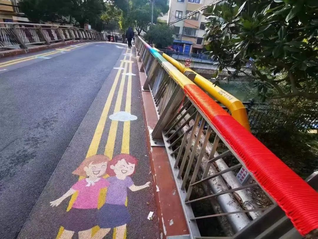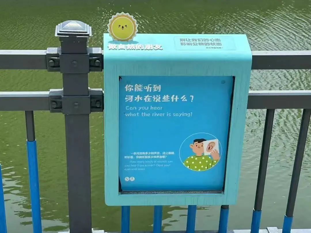围绕儿童服务分中心升级建设,街道还在社区中打造儿童友好安全出行路径,在小区行人入口、学校门口的地面、墙面上绘制醒目、充满童趣的“注意行车安全”的图案;打造沿河生态教育学径,在小区主干道、中心花园及沿河处,可见各类植物认知牌;用多彩尼龙绳缠绕桥上扶手,春申桥摇身一变成了社区的“彩虹桥”;对现有的亲水平台加以艺术改造,分别以鸟、昆虫和水生植物为主题,安装了科普艺术装置。科普艺术装置一面以展示大自然知识为主要功能,另一面安装太阳能板用于照明,实现了集太阳能板、主题标识、夜间照明等多功能一体化,营造多彩、宜居的社区生活氛围。