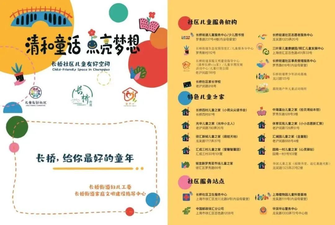 “清和童话 点亮梦想”长桥社区儿童友好空间地图更新啦!日前,徐汇区长桥街道妇联、妇儿工委结合2023年街道家中心调研评估工作,将辖区内近年来已建、新建、更新后的儿童友好空间、社区儿童服务机构、特色儿童之家等进行再梳理,形成了2.0版儿童友好空间地图。