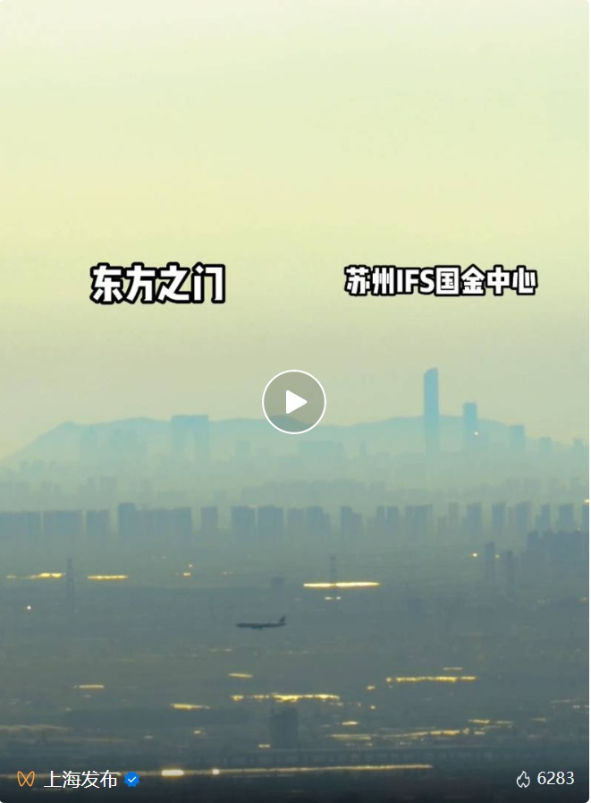 昨天,“上海发布”发布了一段视频,从上海中心望去,苏州的东方之门、国金中心,尽收眼底。