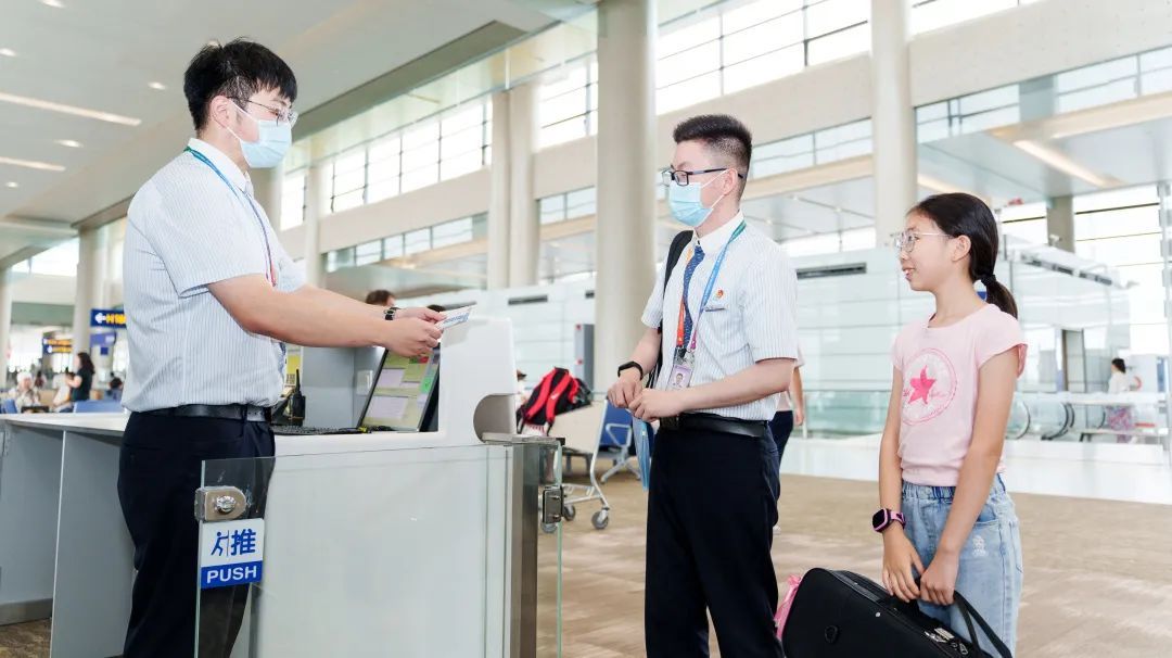 机场里经常有一群特殊的“单飞”小旅客,在工作人员的全流程陪护下完成值机、安检和登机流程,到达目的地后再由专人将他们送至指定接机人手中。这就是民航针对年满5周岁未满12周岁,乘机时无成人同行的儿童推出的无人陪伴儿童服务。