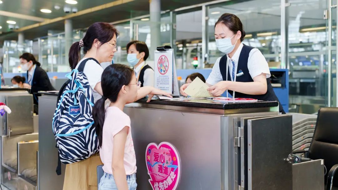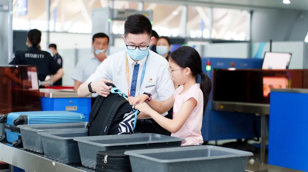 在服务人员陪同下,无人陪伴儿童通过安检优先通道快速过检。