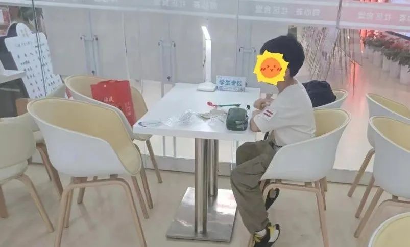 在下午食堂休息的时间,设立未成年专区,将公共空间最大化合理运用,提供学习专用护眼灯,为孩子们提供一个整洁安静的学习环境。