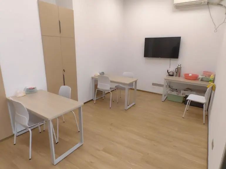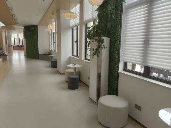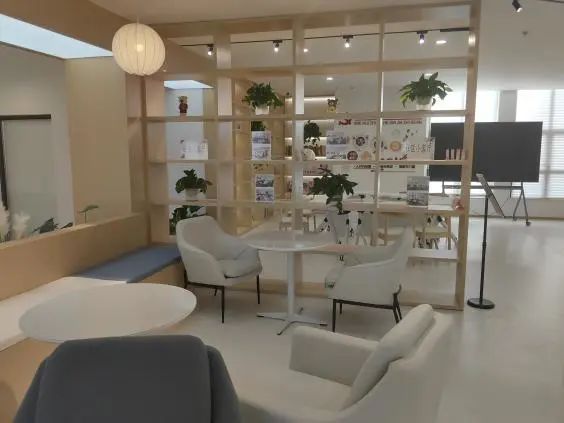 “小小”的社区中心·党群服务中心内还藏着一个“大大”的日间照料站,每天为社区老人们提供“微日照”“微助餐”功能服务。站内餐桌椅、电视、烧水壶、个人物品柜等设施一应俱全,北欧风的装修搭配小植物更将空间装点得格外温馨。