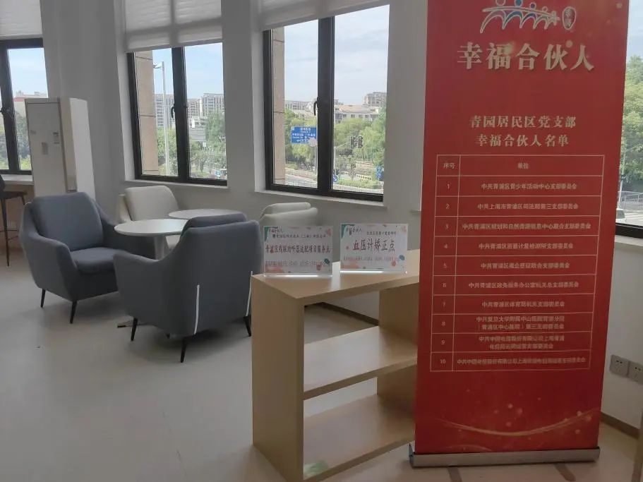 瞧,在中心一角,还看到社区两家“幸福合伙人”为社区治理提供基本服务支持的助听器适配项目服务点和血压计矫正点。