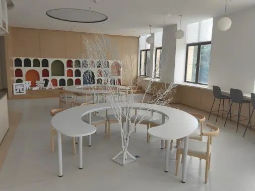 这大平层内,看似开放,实则合理划分了“议事厅”“小讲堂”“大舞台”“儿童区”等空间。过道和边缘区域也都得到充分利用,打造成了风格各异的休憩座位,还有氛围感满满的各种植物装饰,并且其中功能还在不断“上新”中……