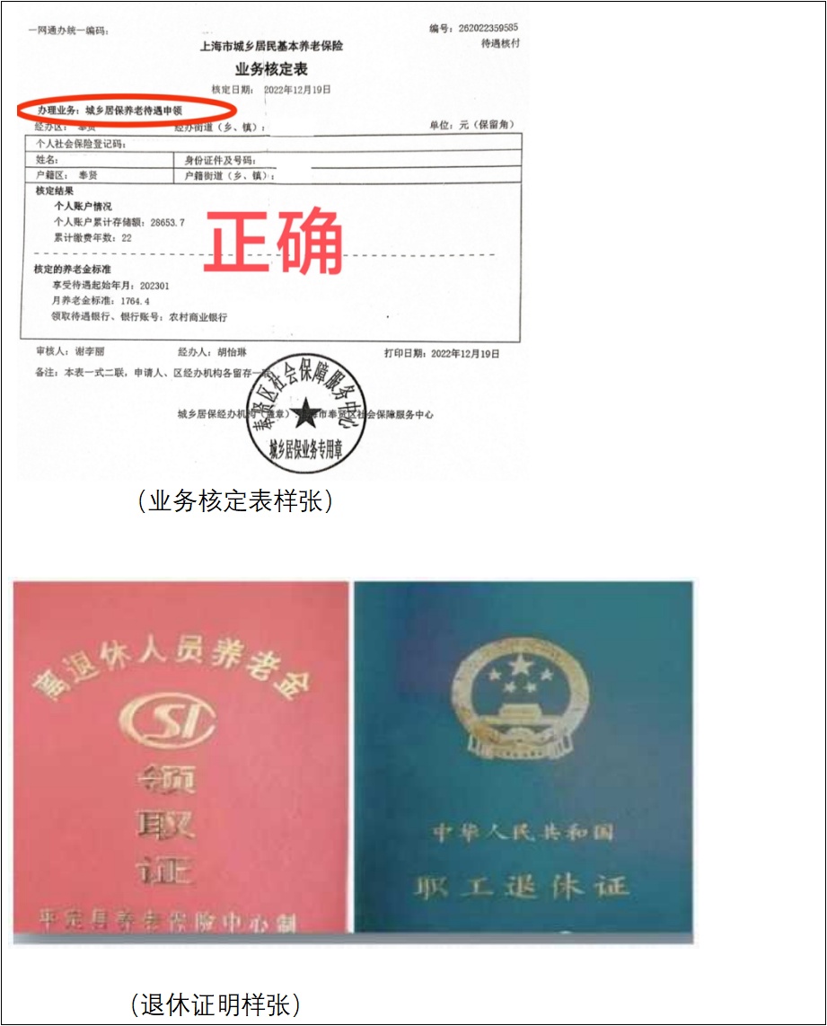 1)属于情形一,在外省市办理退休手续(含城乡居保养老的)需外省市已办理退休的 相关材料。(若在本市农保退休需提供《上海市城乡居民基本养老保险业务核定表》);