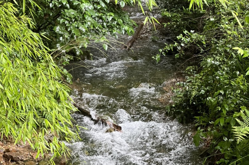 在徒步古道的途中,还将穿过几条碎石小溪,炎热的天气里,小朋友们可以沿溪踏水,边玩边行。溪水在耳边潺潺,满目皆是绿影婆娑,深呼吸一口,皆是夏日自然的清新。