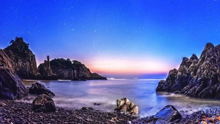 花岙岛的日出日落,也是不可错过的风景。在海上石林的映衬下,日落少了一分温柔,但更添了一分雄伟壮丽。与亿万年的石柱一起,见证日落月升,感受星空与海浪。