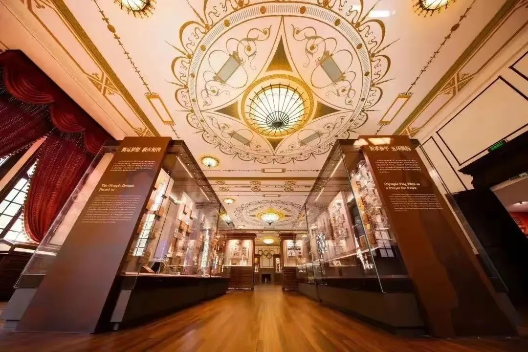 二楼展厅曾是西侨青年会的交谊舞厅,炫彩的玻璃、精巧的雕刻和复古的吊灯,让这里氛围感满满。不仅可以了解体育和非遗相关的知识,更能以建筑为书籍,阅读历史哦!