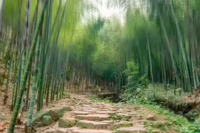 古道的路面以小石板和石块铺成,路面被打磨得十分光滑,古道旁还有着从宋代到明清时期的瓷片,这是历史的印记。古道的森林覆盖率高达93%,主要植被为毛竹,一路穿过竹林而上,聆听竹叶在风中沙沙作响。